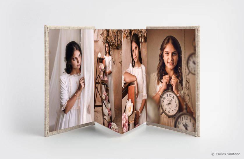 Fotopapiere: Seidenmatt (mit mattem oder glänzendem UV Lack) oder Seidenraster