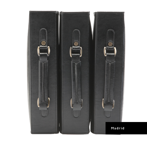 As malas Madrid estão disponíveis apenas em material Black 01 e Brown 02. O Saco de Pano é como o próprio nome indica feito em tecido branco ou preto e está disponível para todos os tamanhos de álbuns.